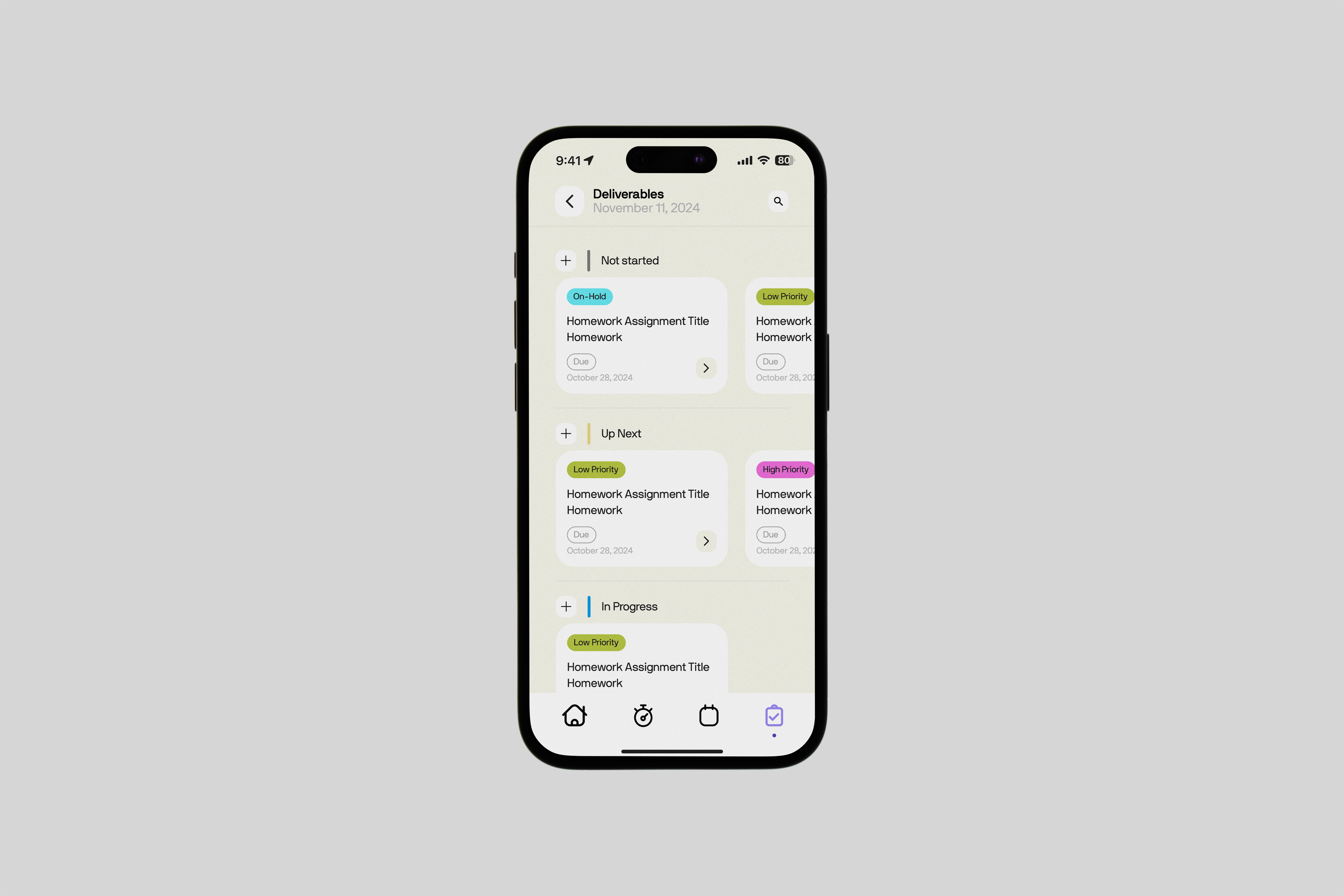 Beyond a simple timer, I wanted to discover other ways to enhance a user's productivity. My research revealed that users need a clear overview of their remaining tasks to truly feel in control. This insight led to a major design decision: creating a centralized task management hub. This feature was crucial for streamlining the user experience and giving people a complete picture of their workload.